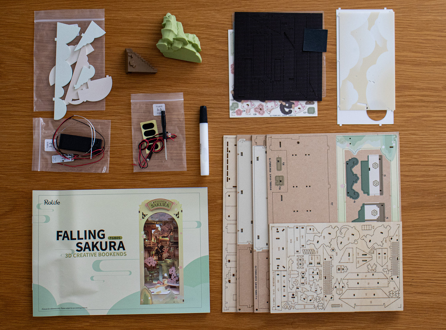 Die Book Nook Sets von Rolife bestehen häufig aus: