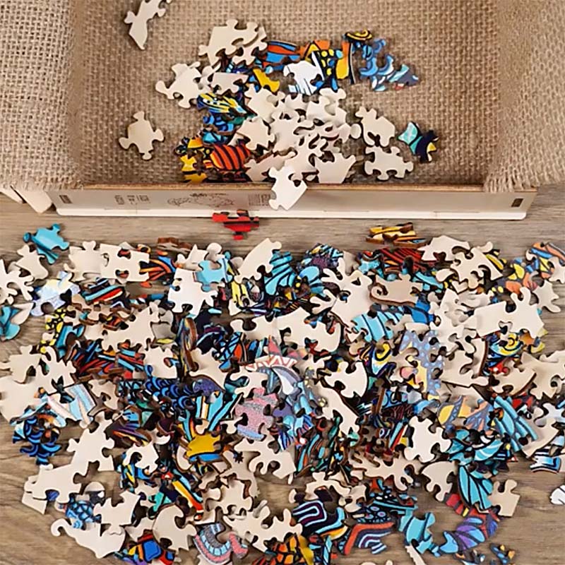 Holzpuzzle werden aus Holz, zumeist Lindenholz, hergestellt. Die Holzpuzzle können in verschiedenen Formen, Größen und Schwierigkeitsgraden erhältlich sein und sind eine beliebte Freizeitbeschäftigung für Kinder und Erwachsene. Die Idee besteht darin, die Holzteile zusammenzufügen, um ein bestimmtes Motiv z.b ein Tier oder auch Muster zu erstellen. Die Holzpuzzle für Erwachsene sind besonders schwer.