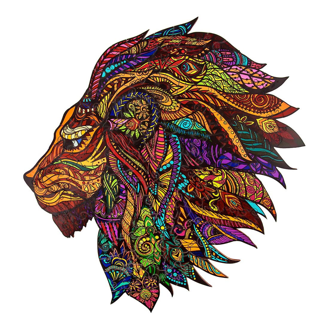 Der Löwe, König der Tiere, stolziert anmutig und majestätisch durch die Savanne Afrikas, schleicht sich durch das hohe Gras an seine Beute heran, seine Mähne weht dabei wild und ungestüm in der flirrenden Hitze. Das Bild dieses einzigartigen Geschöpfs kannst du nun selbst Stück für Stück mit diesem Holpuzzle entstehen lassen. Die charakteristische Mähne des imposanten Raubtieres ist das Highlight dieses außergewöhnlichen Holz-Puzzles. Feurig, temperamentvoll und facettenreich schillert sie in all ihren intensiven Farben, als spiegele sich das pulsierende Leben Afrikas darin.