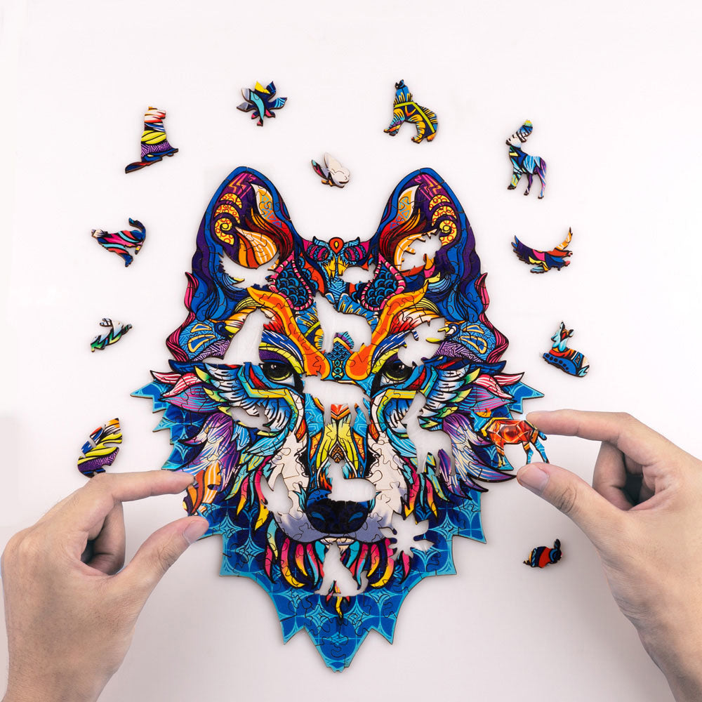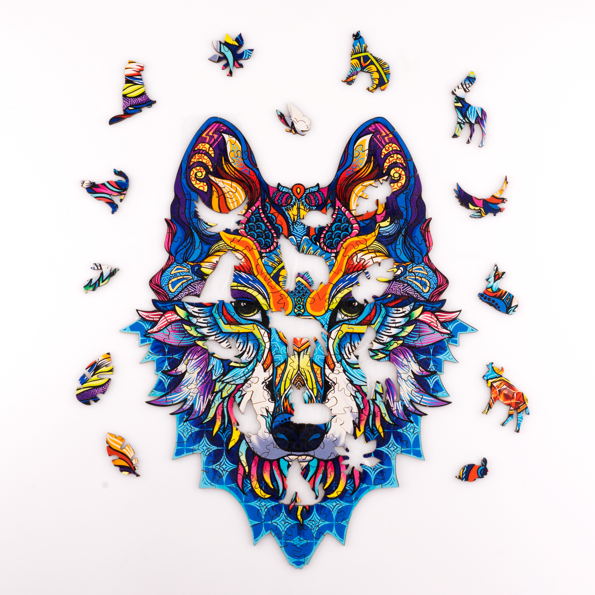 Das leuchtend-bunte Schneewolf-Puzzle aus Lindenholz wird Dich auf den ersten Blick begeistern. Es regt nicht nur die kognitiven Fähigkeiten an und trainiert die Feinmotorik, es bereitet auch richtig viel Spaß. Du wirst es als sehr entspannend empfinden, wenn Du Dir eine Kerze anzündest und Dich mit den vielen kleinen, bunten Puzzleteile des Schneewolfes beschäftigst. Je nachdem, wie sehr Du Dich oder Deine Freunde und Bekannten fordern möchtest, kannst Du das Holzpuzzle vom Schneewolf in unterschiedlichen Größen bestellen. Je größer das Holzpuzzle des faszinierenden Schneewolfes ausgewählt wird, desto mehr Teile sind es. So kannst Du für jeden die passende Herausforderung finden und kaufen.
